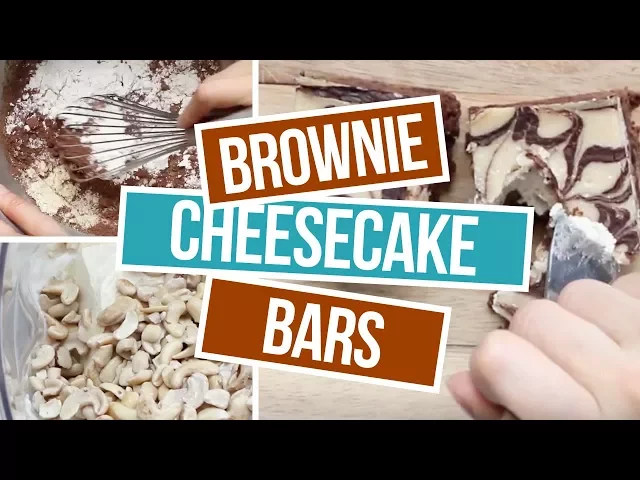 Full Recipe: http://theheartysoul.com/brownie-cheesecake-bars-recipe-vegan-gluten-free-refined-sugar-free/